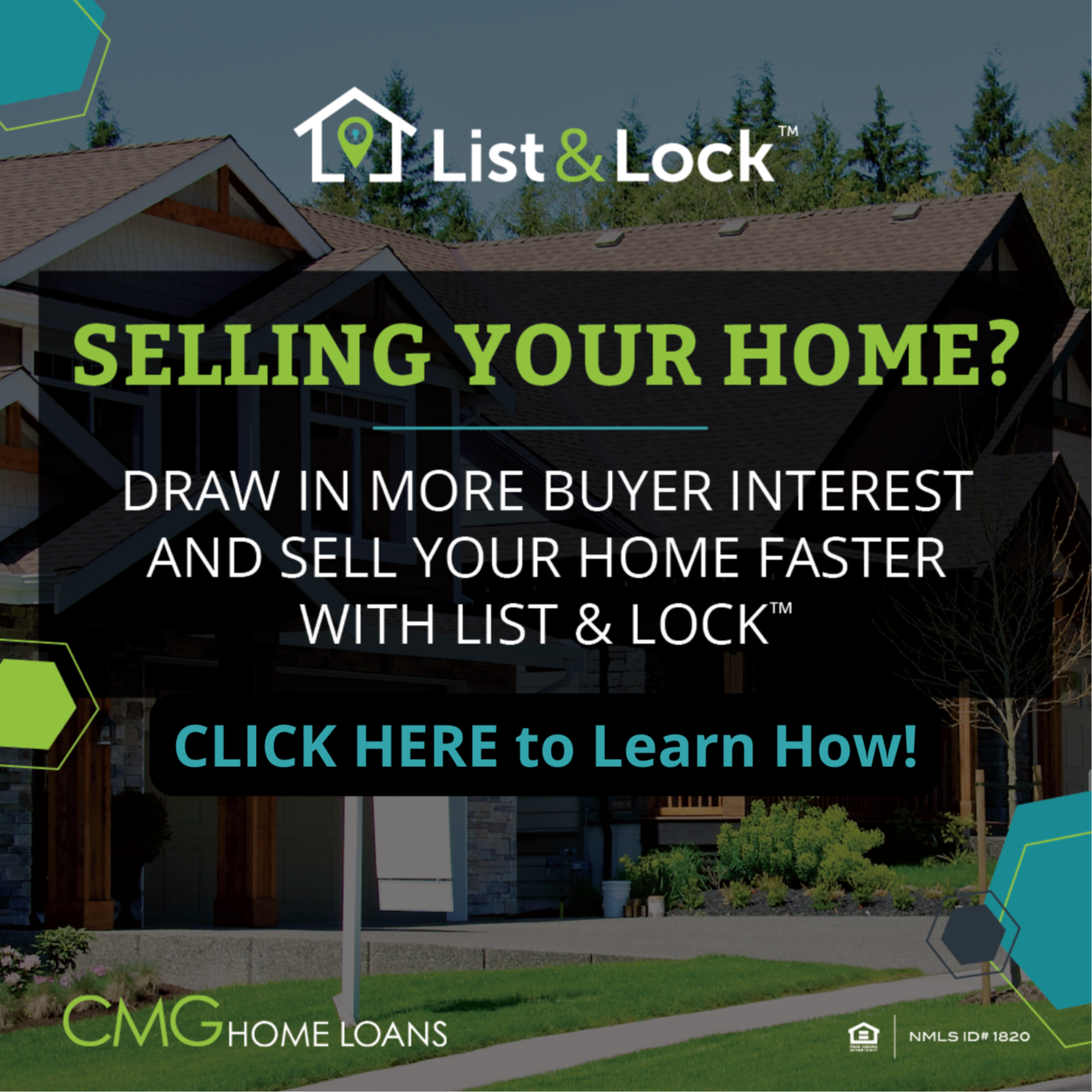 Right now, one of the biggest hurdles for most buyers is interest rates. With CMG Home Loans' exclusive List & Lock™ advantage, you can ensure buyers get a discounted market rate on their mortgage, AND you can advertise lower market rates in your listing and your open houses. It's a win/win for sellers and buyers. It helps you attract more interest, sell faster, and in most cases save more money than a price reduction. And it helps buyers gain the peace of mind of a lower interest rate and more affordable access to the American Dream.